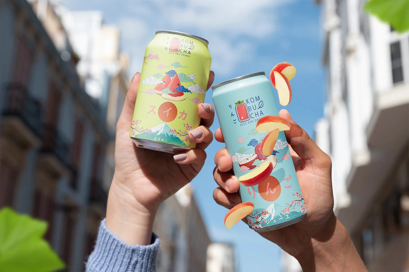 Des packagings colorés et sensoriels qui traduisent l’énergie naturelle, la vitalité et la modernité du kombucha.
